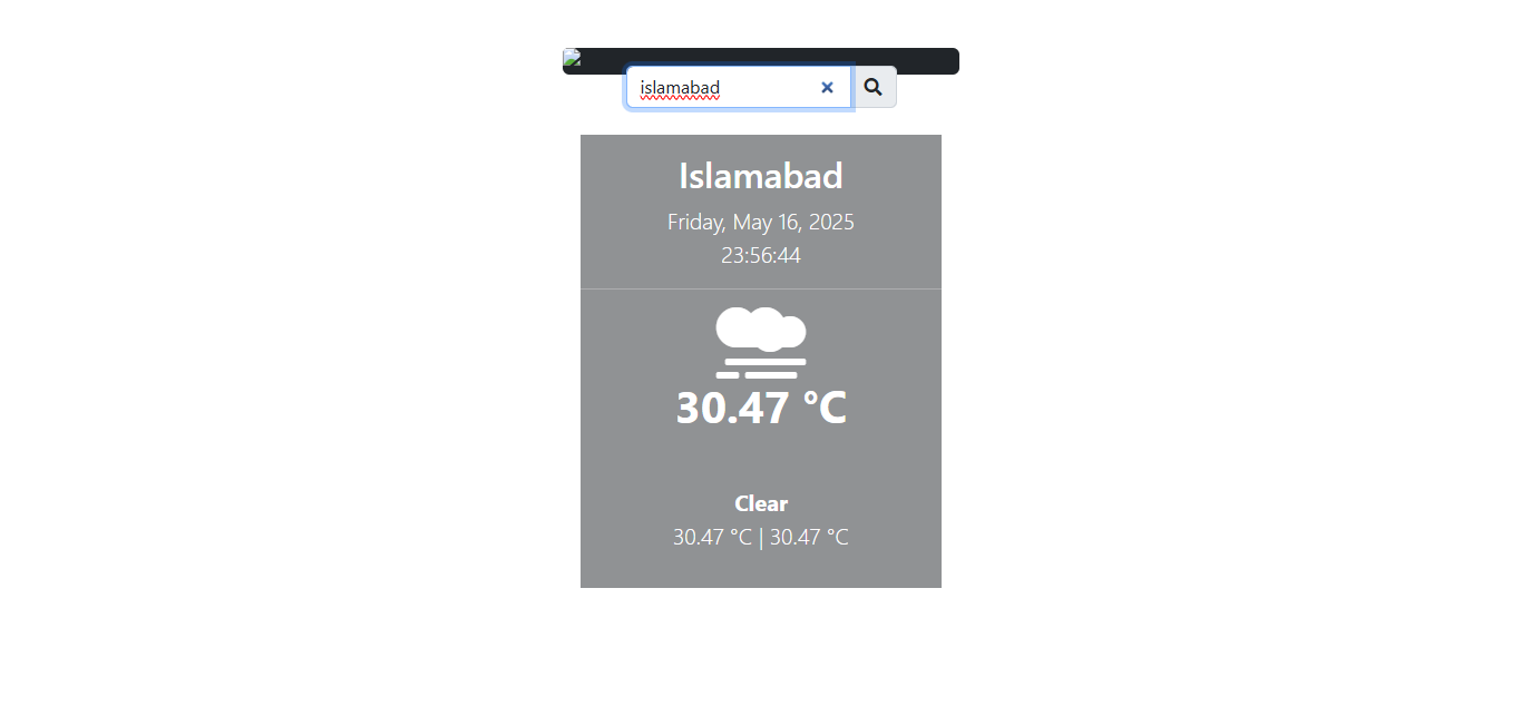 A personal project that provides realβtime weather information for any location. Built with ReactJS, this app features a search field to look up cities and displays current weather data fetched from multiple APIs.